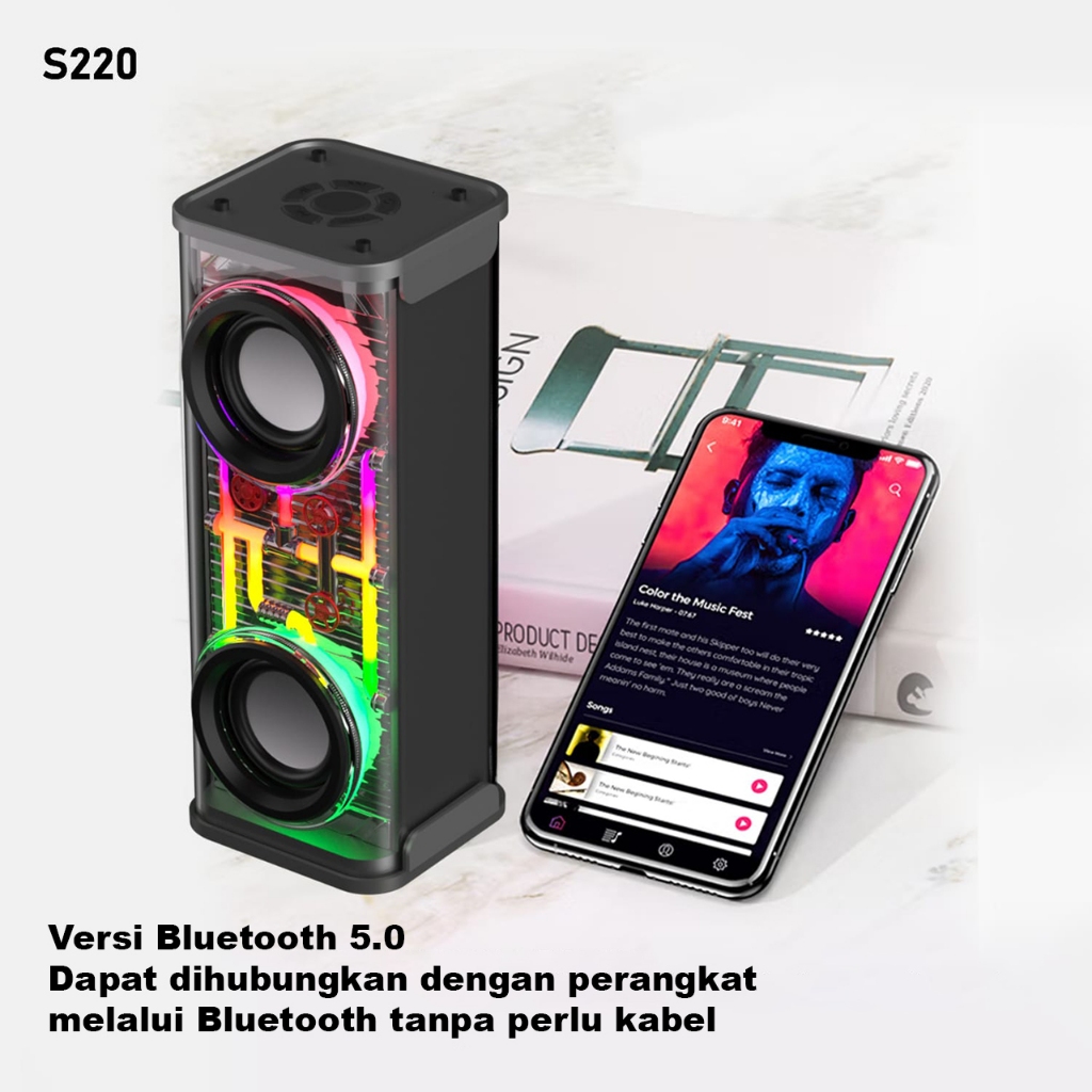 LENYES S220 12W Mini Transparan Wireless Speaker Bluetooth 5.3 Transparant RGB LED Light TWS Portable