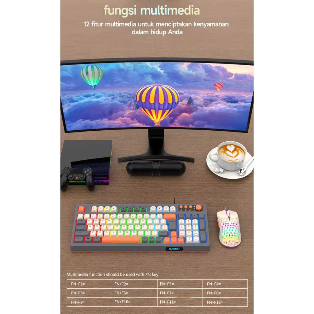 [Xim Home] Set Keyboard K98 Gaming E-sports Jerman dengan Kabel, Switch Coklat, Senyap, Sensasi Mekanis, dan Nirkabel.