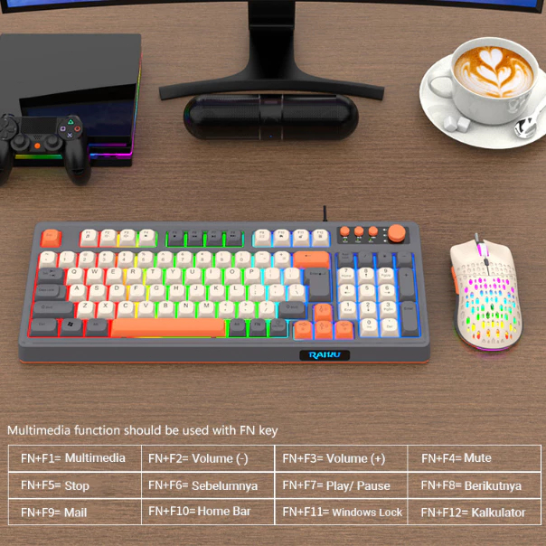 RAIKU Keyboard mekanik Rasa sentuhan, keyboard 75% Keyboard gaming tiga warna yang penuh gaya Dilengkapi dengan RGB Back