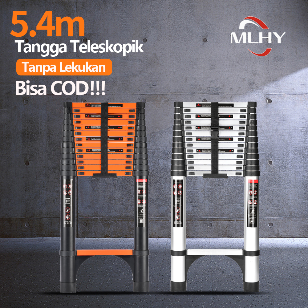 Ready MLHY Tangga Teleskopik tanpa lekukan 5.4M Aluminium Lipat Aluminium Telescopic Single Ladder 5.4M Hitam Oranye da