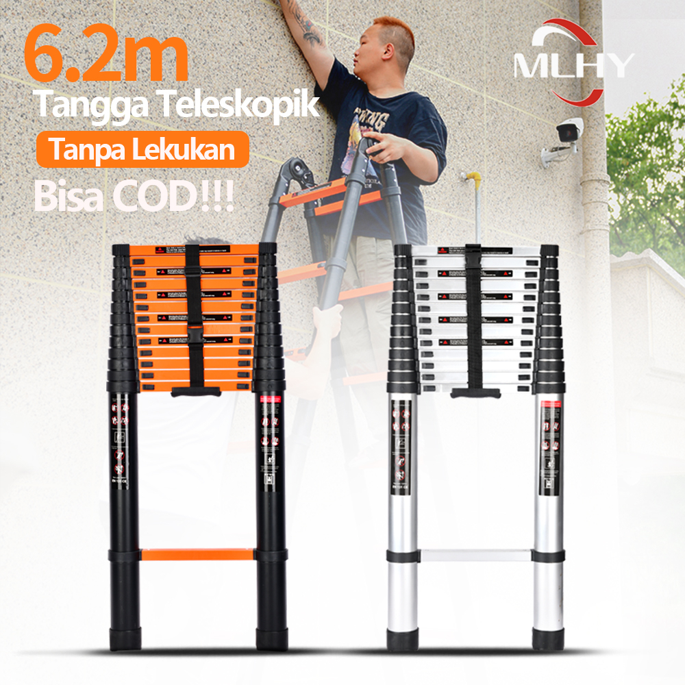 Ready! MLHY Tangga Lipat Aluminium Teleskopik 6.2M Single Telescopic Ladder 6.2 M Tangga Teleskopik tanpa lekukan hitam