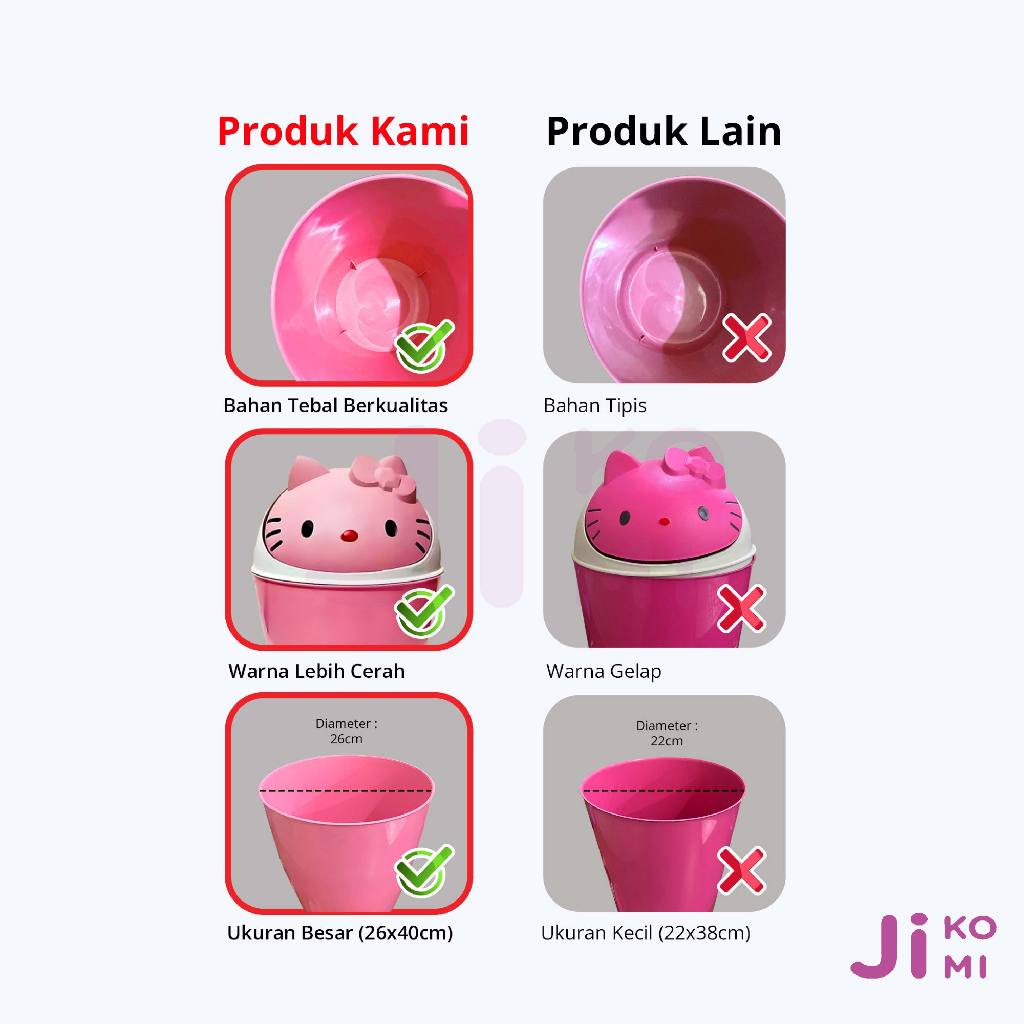 Tempat Sampah Karakter 10 Liter Hello Kitty Panda Tong Sampah Jumbo Plastik Tebal - JI