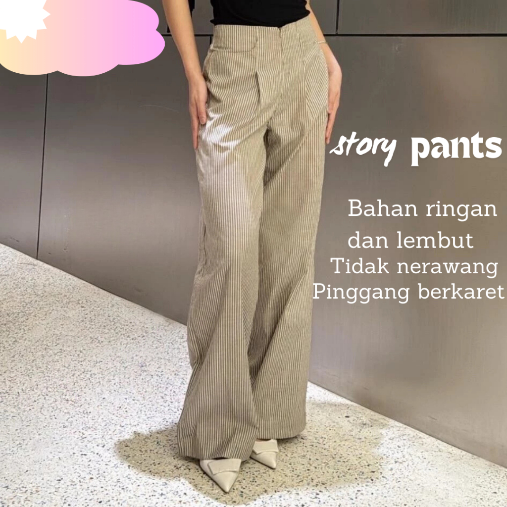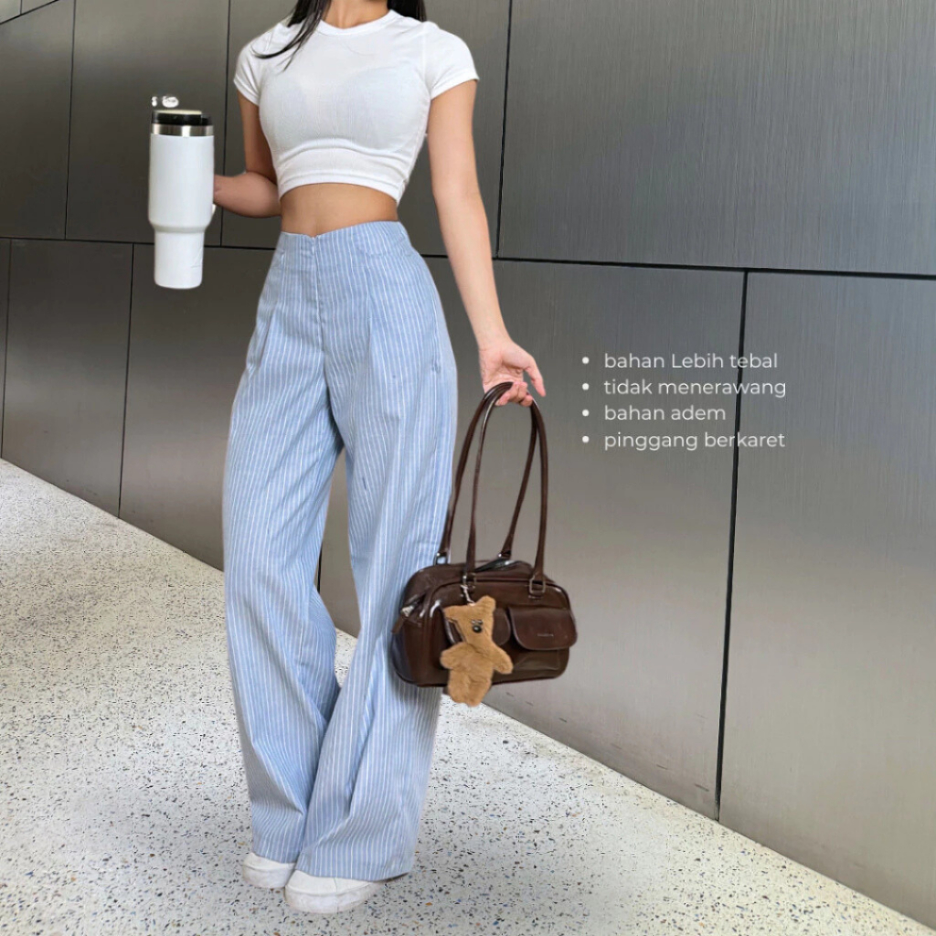 Pants | terbaru Celana Tidur Panjang Wanita Kantor Kuliah kerja Motif Garis salur Kulot Pinstripe salur korean sity kekinian