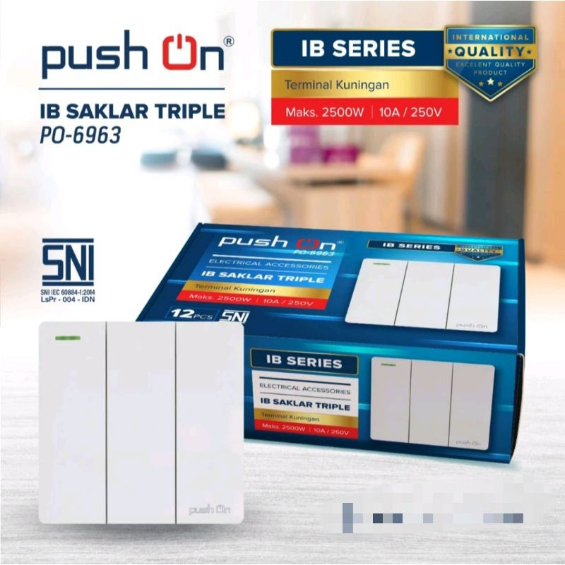 PUSH ON IB Saklar Engkel / Seri / Triple / Stop / Engkel Stop Tanam Saklar Rumah Putih Minimalis Mewah Sakelar Lebar SNI Bisa Inbow / Outbow