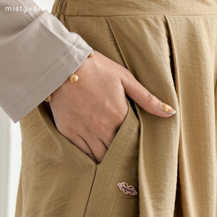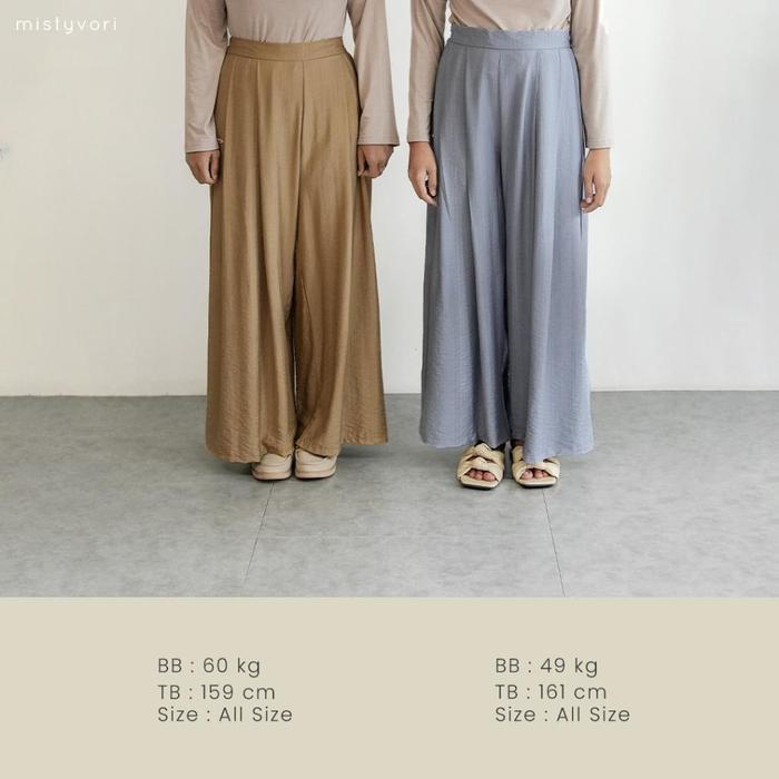 MISTYVORI L HAFA PANTS BAHAN LINEN CELANA KARET KULOT PANJANG BAWAHAN WANITA - ANTELOPE