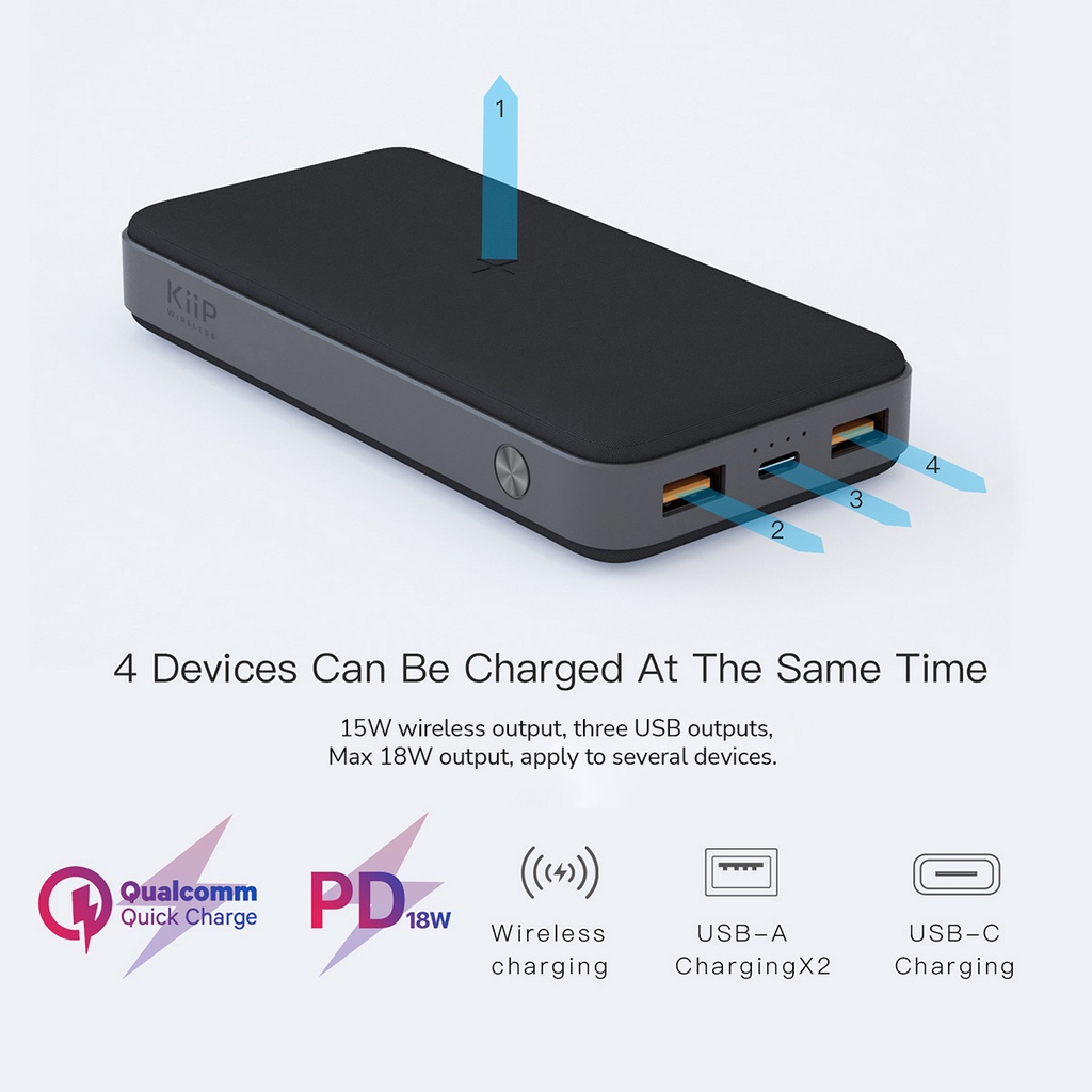 Kiip Wireless EW40 Power Bank 15W Fast Charging PD&QC 3.0 20W 20000mAh