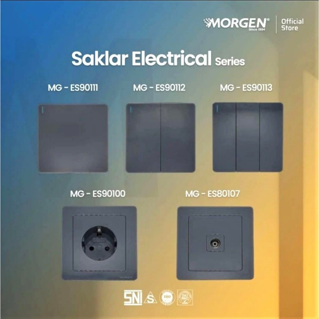 Morgen Saklar Tanam Minimalis Premium Grey / Abu Stop Kontak, Seri , Saklar , Triple , Soket TV