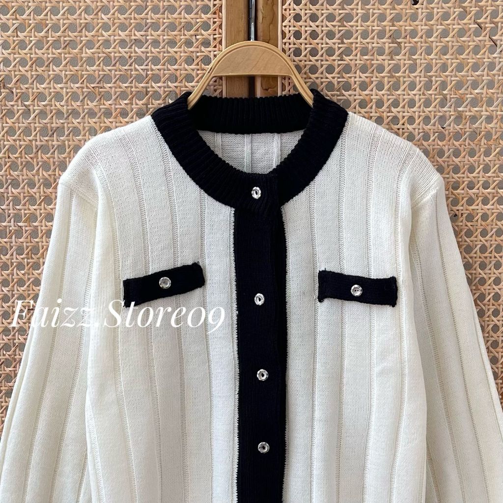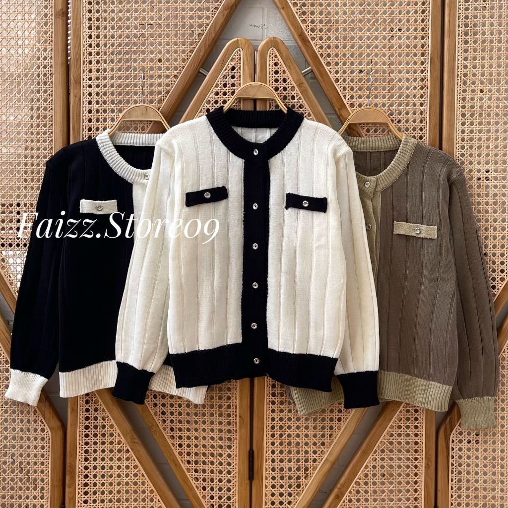 Amisha Cardigan Rajut Stripe Kancing Salur Wanita Lengan Panjang