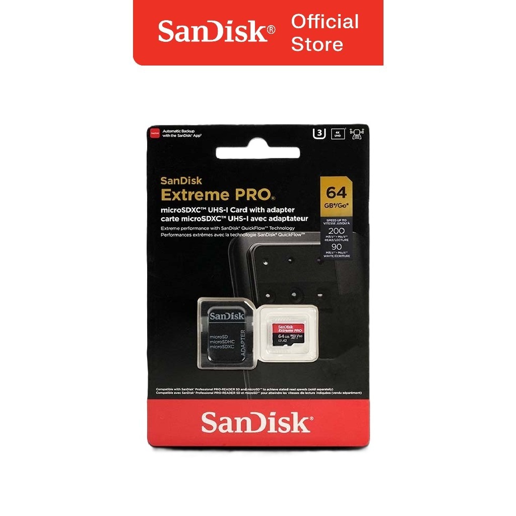 SanDisk microSDXC Extreme Pro 64GB Class 10 UHS-I A2 V30 U3 4K UHD Action Cam (Up to 200MB/s)