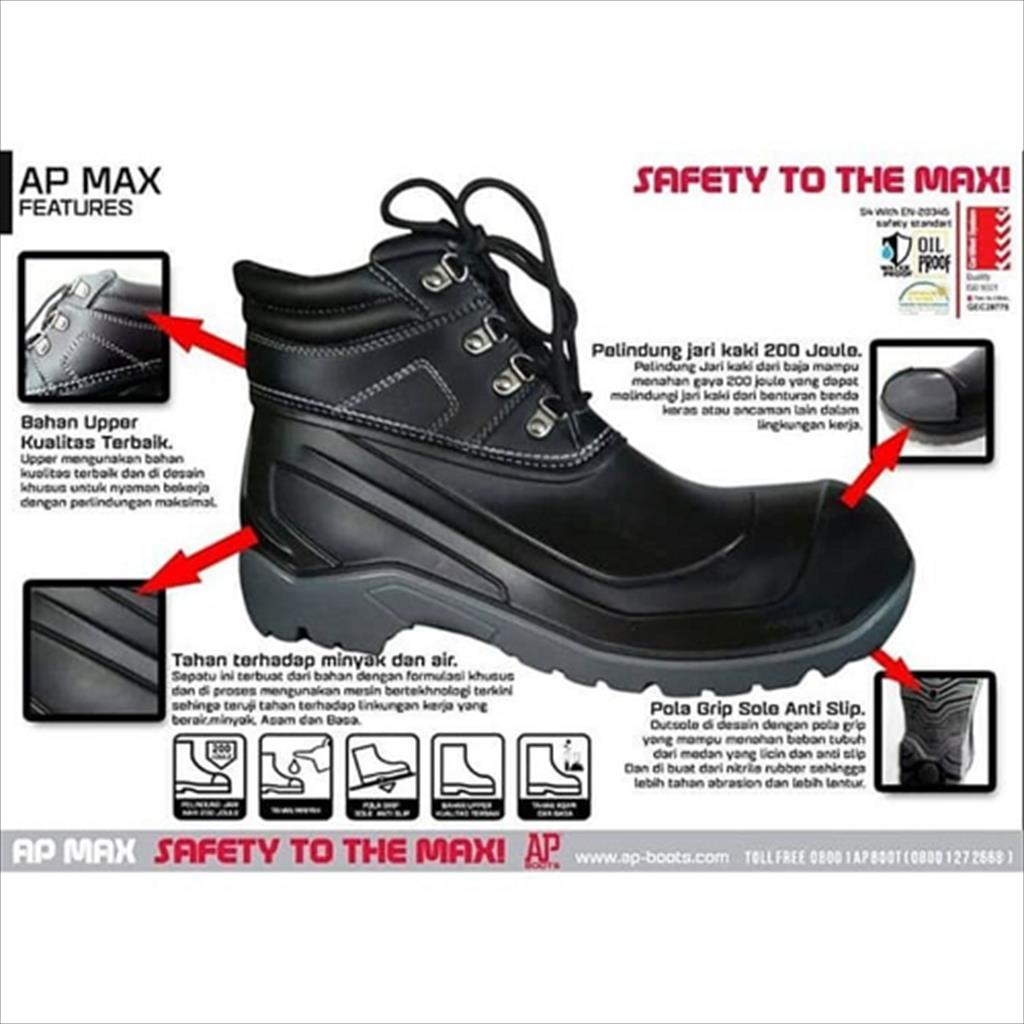 SEPATU BOOT SAFETY AP BOOTS - AP MAX HITAM SEPATU KERJA KONTRUKSI PROYEK SIZE 39-43