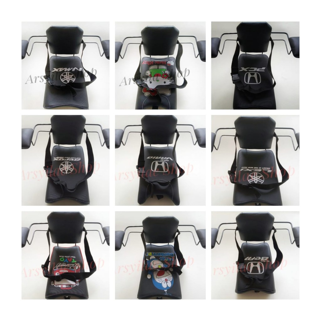 Tayo (sandar), Doraemon(sandar), Hello kitty (sandar), Kuda pony (sandar), Frozen (sandar), Spiderman (sandar), Keropi (sandar), Minions (sandar), Upin ipin (sandar), tulisan Beat(sandar), logo Scoopy(sandar), tulisan Vario sandar, tulisan Nmax(sandar), polos hitam sandar, hitam merah sandar, hitam biru sandar, hitam putih sandar, hitam coklat sandar, hitam pink sanbdar
