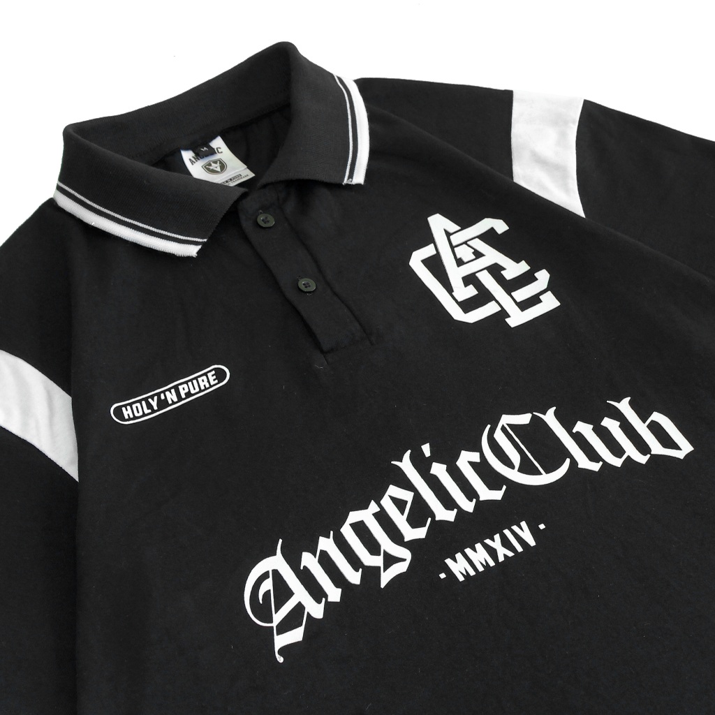 BAJU KAOS PRIA ANGELIC HOLYNPURE VINTAGE RUGBY SHIRT PENDEK BLACK ALC ORIGINAL TERLARIS