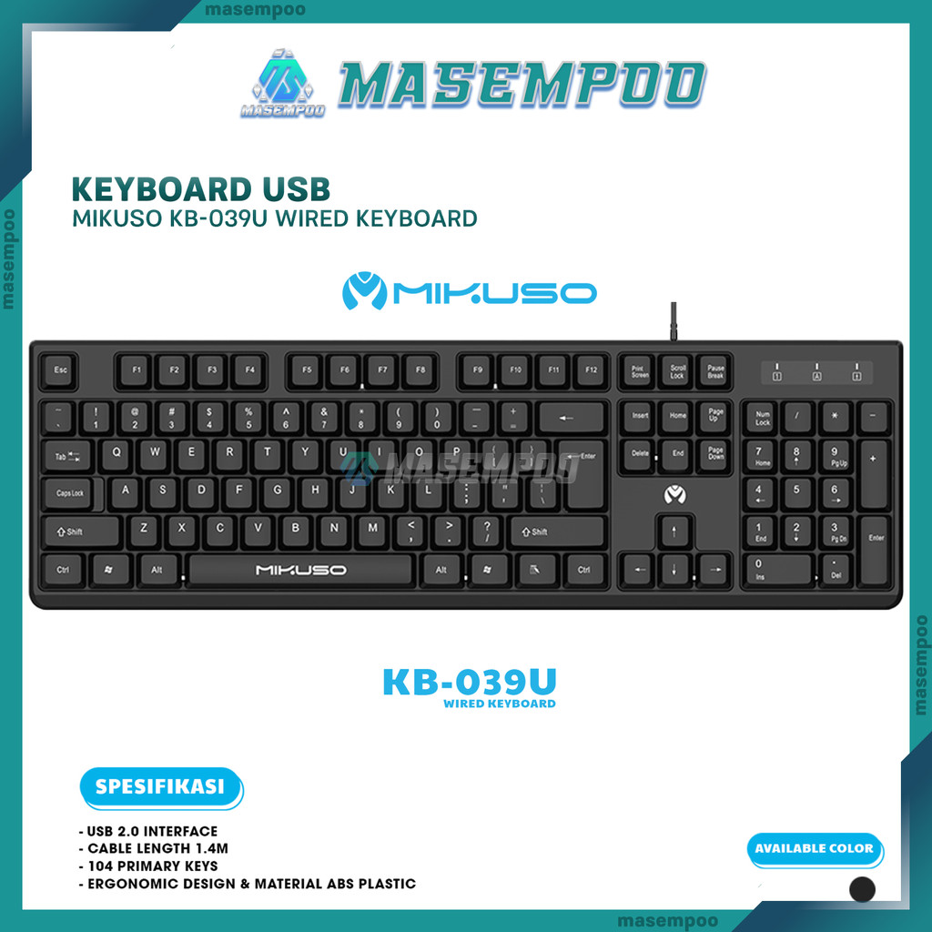 Keyboard USB Wired Mikuso KB‑039U Standar 104 Keys Ergonomic untuk Kantor dan Bisnis