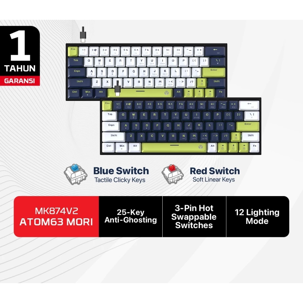 Keyboard Gaming Mechanical Fantech ATOM MORI SERIES ATOM63 Layout 60% Hotswappable 3 Pin RGB Type C
