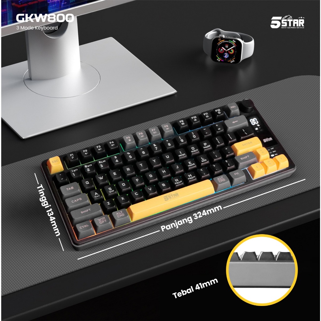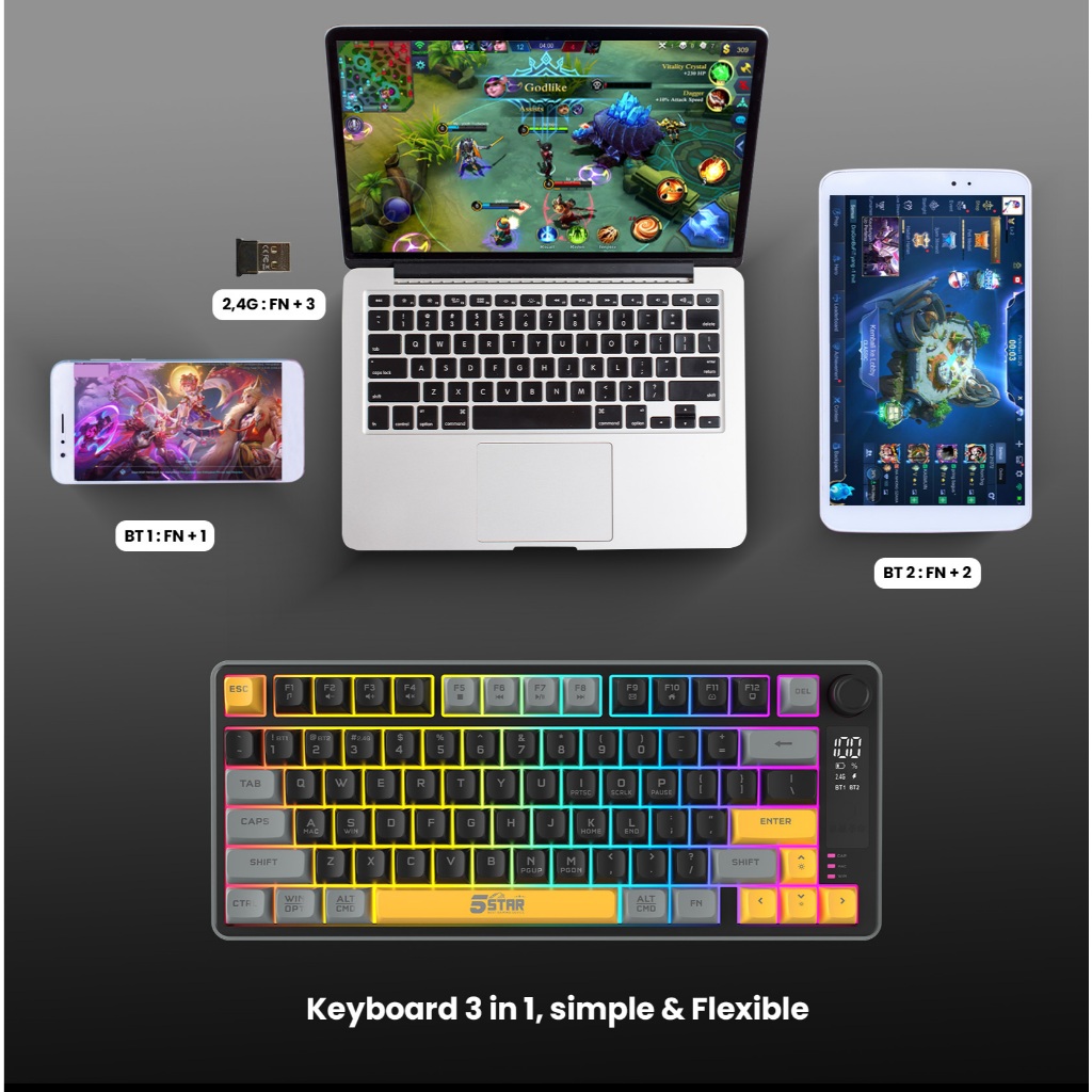 5Star Keyboard Wireless Gaming 77 Keys RGB Bluetooth Untuk PC LaptopTablet HP (Android/iOS) GKW800