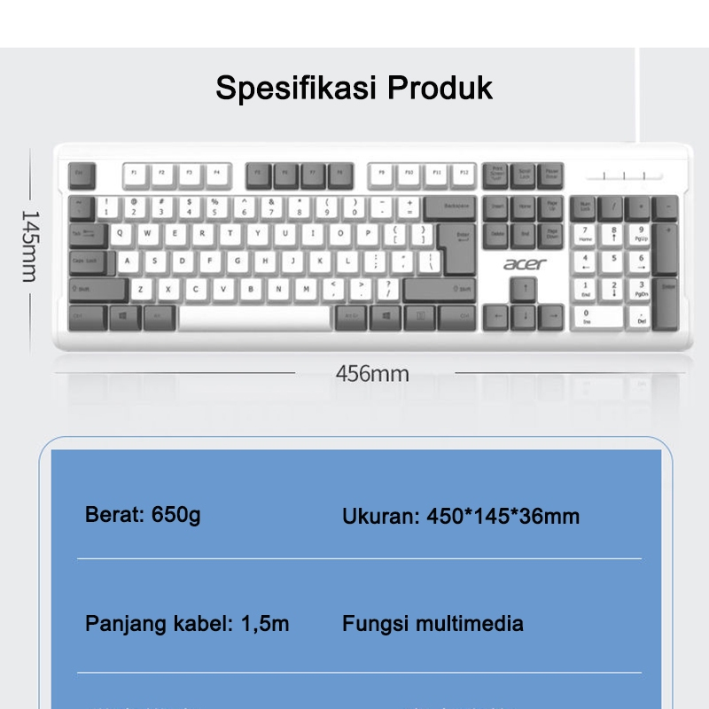 Acer Keyboard Gaming Wired RGB Silent Click USB Kabel Untuk Komputer