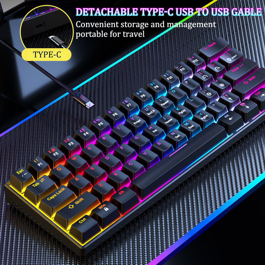 【】Mechanical Gaming Keyboard Wired RGB Light 61 Keys PBT Keycap Blue switch keyboard60%mechanical