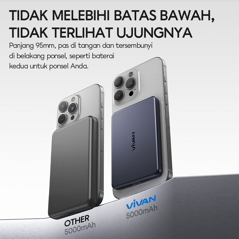 VIVAN Ultra Thin Wireless Powerbank 5.000mAh Magnetik 15W PD 20W VPB-W05 Garansi 18 Bulan