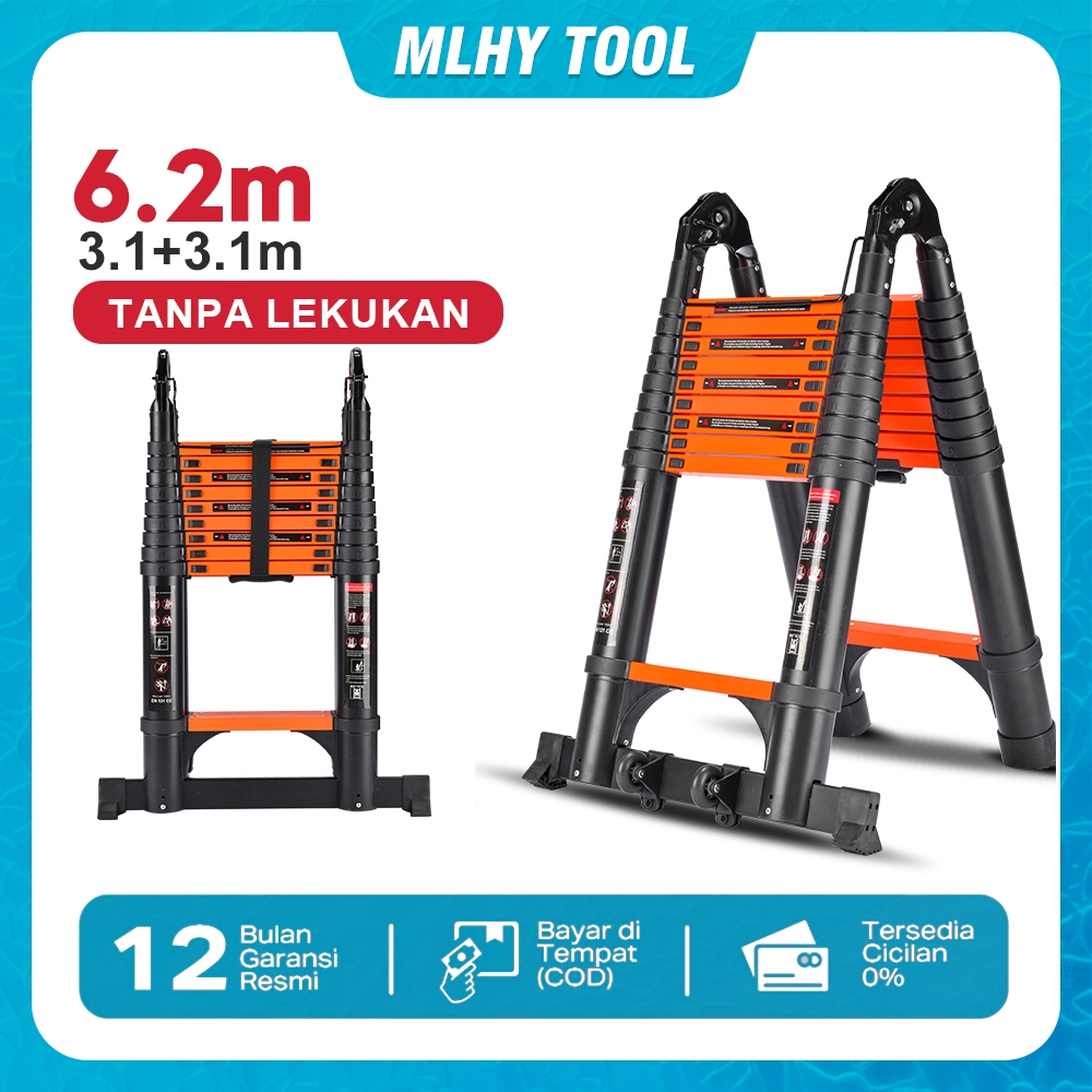 MLHY Tool Tangga Teleskopik 3.1+3.1 6.2M Aluminium Double Telescopic Ladder 6.2 Meter Tangga Teleskopik Portabel Rumah