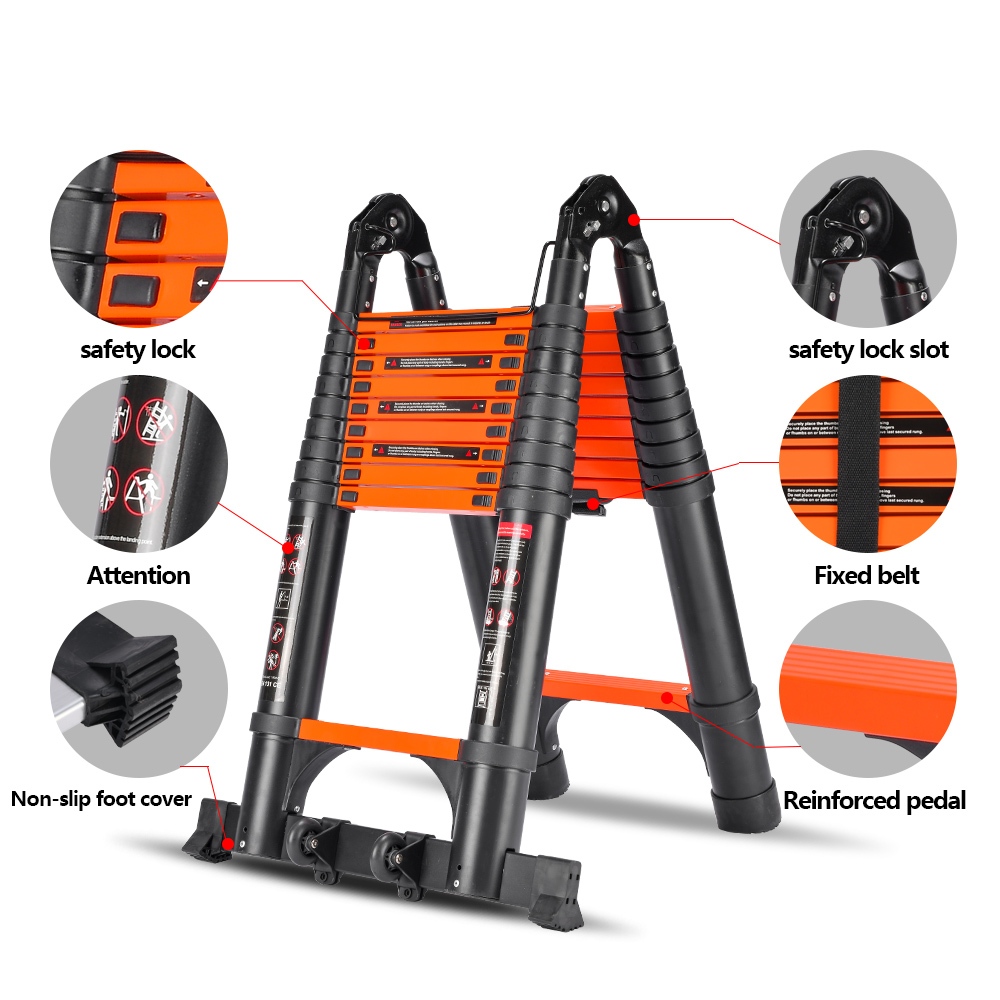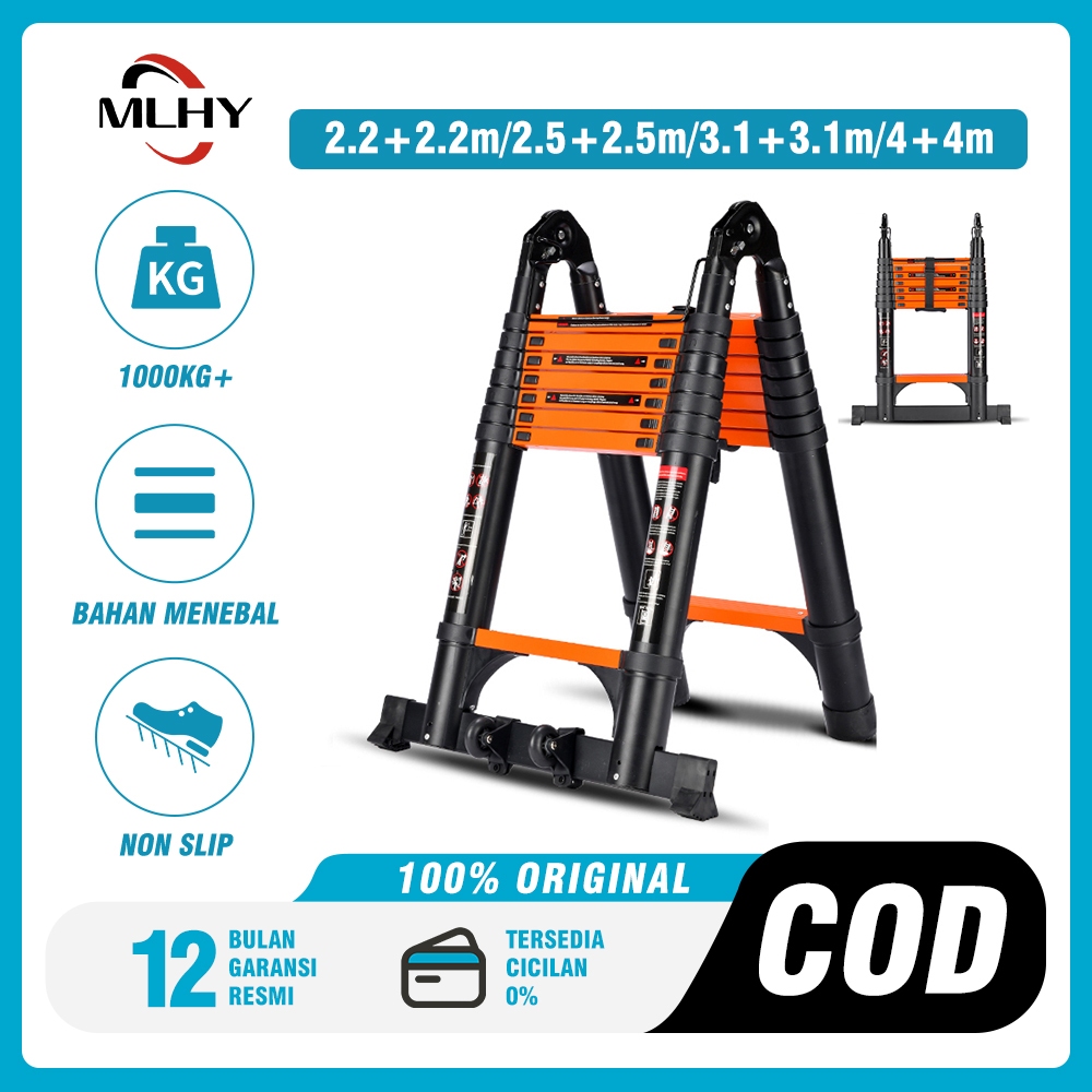 MLHY Tangga Teleskopik Aluminium Tangga lipat Double Ladder Multifungsi tangga 4.4m/5m/6.2m/8m Telescopic Ladder