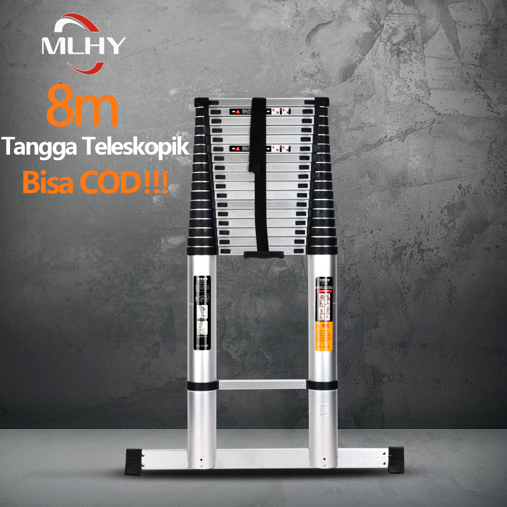 Ready MLHY Tangga Teleskopik 8M Aluminium Lipat Aluminium Telescopic Single Ladder 8M