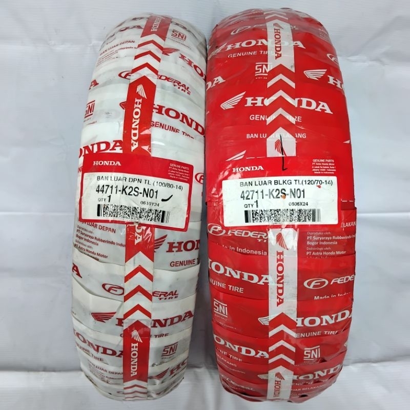 BAN LUAR VARIO 160 PCX 150 DEPAN 100/80-14 BELAKANG 120/70-14 RING 14 TUBELESS K2S HONDA AHM FEDERAL