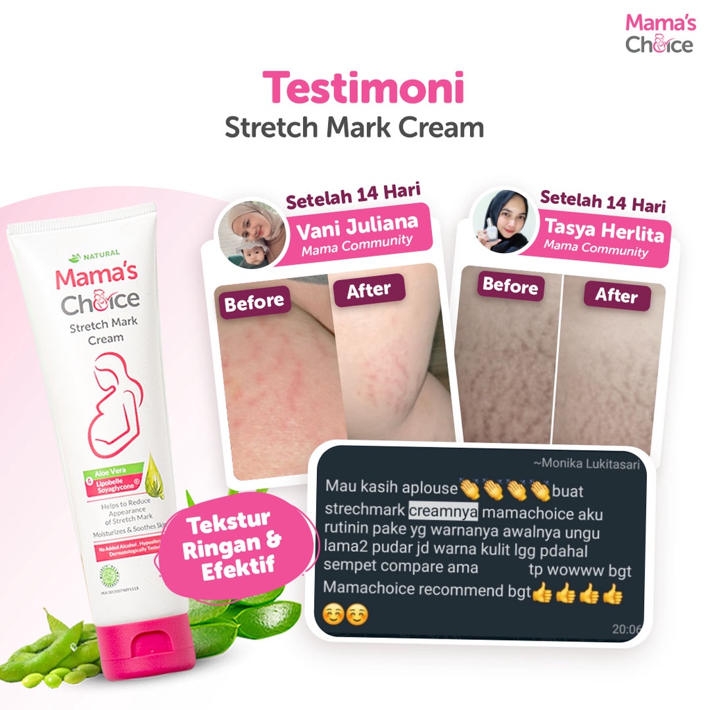 Stretch Mark Cream Mama's Choice (Krim Strechmark Ibu Hamil dan Menyusui) Terdaftar BPOM Mengandung Olive Oil
