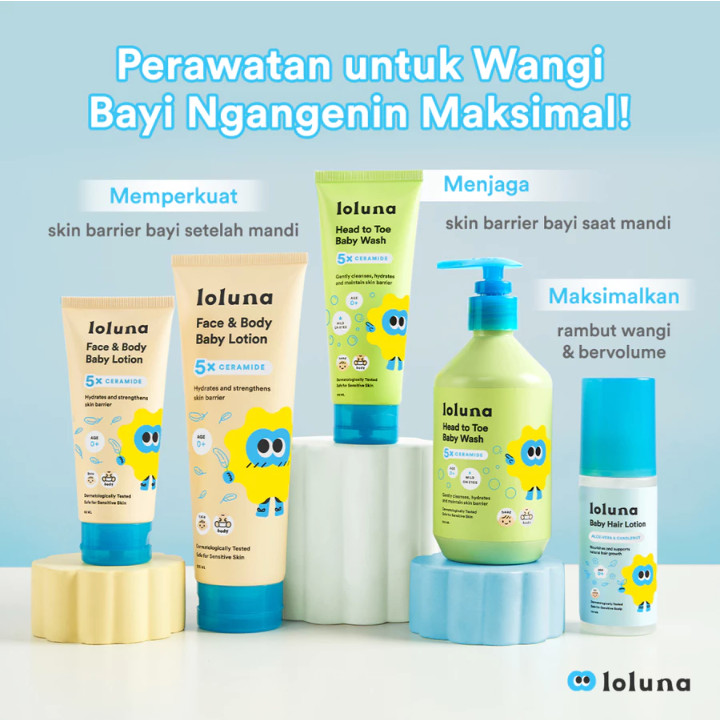 LOLUNA Travel Set | 2 in 1 Sabun dan Sampo 100ml + Losion Wajah dan Tubuh Bayi Baru Lahir 80ml.