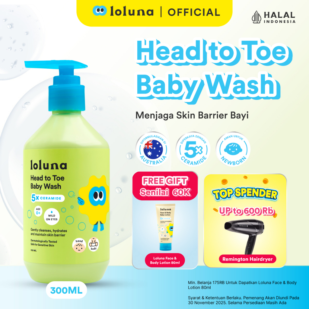 Loluna Head to Toe Wash 300ml - Sabun Sampo Mandi Perawatan Kulit Bayi dan Anak / Sabun untuk Newborn/ 5x Ceramide
