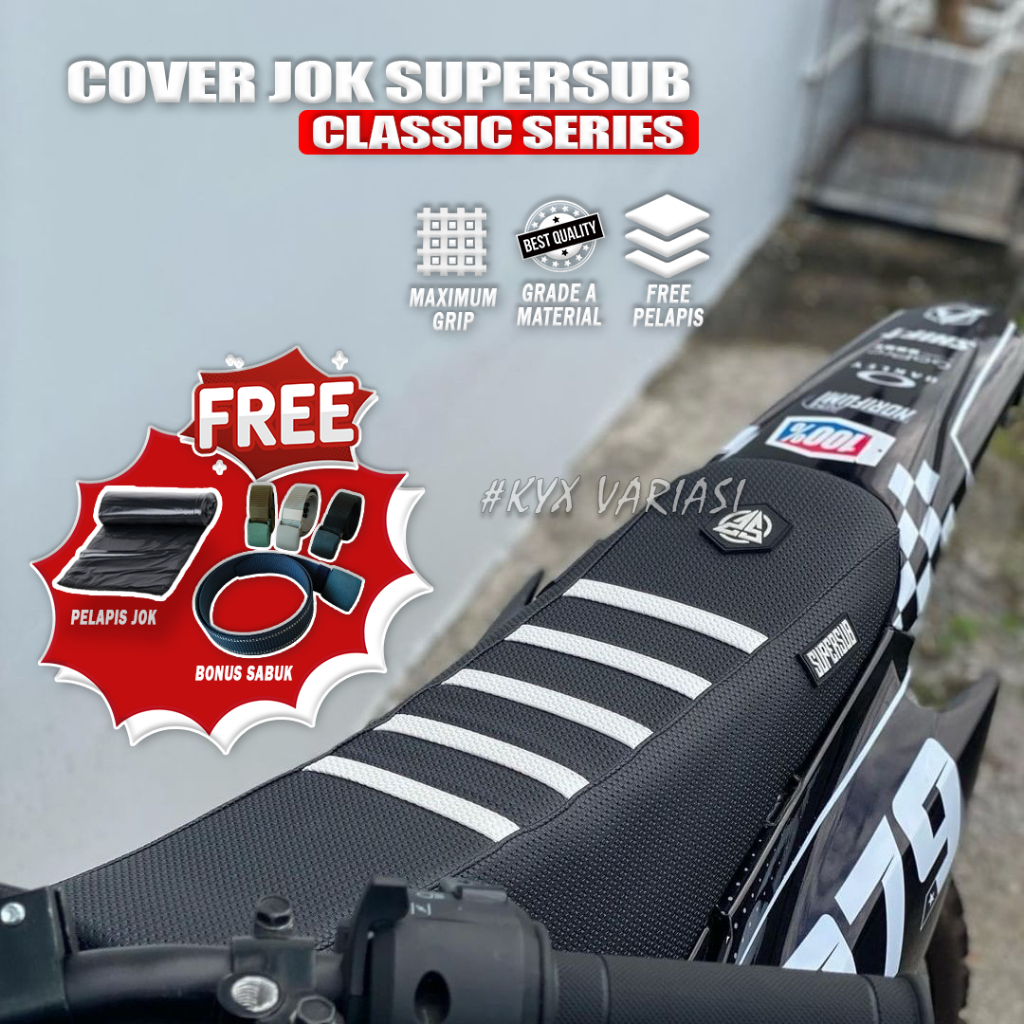 Cover Seat Bungkus Sarung Kulit Jok Universal Premium Supersub List CRF KLX Dtracker Supermoto Strip Sarung Jok Hitam GORDON WR155