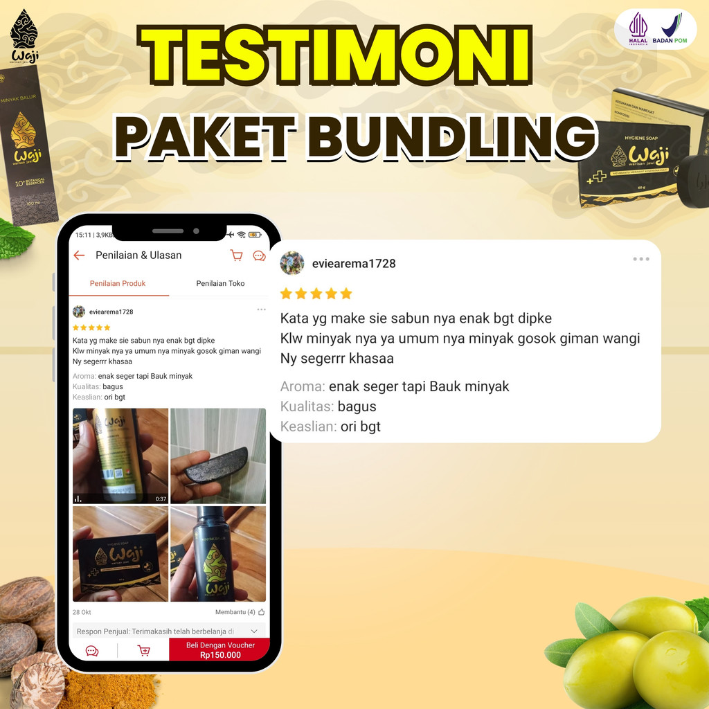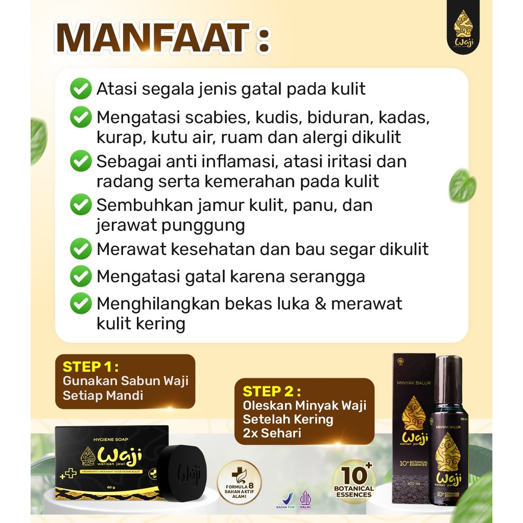 PAKET 1 Minyak WAJI + 2 Sabun Waji - Paket Obat Herbal Ampuh Meredakan Gatal Gatal Eksim Ruam Alergi Scabies Panu Ruam J