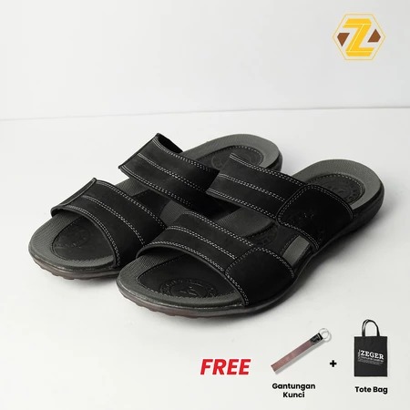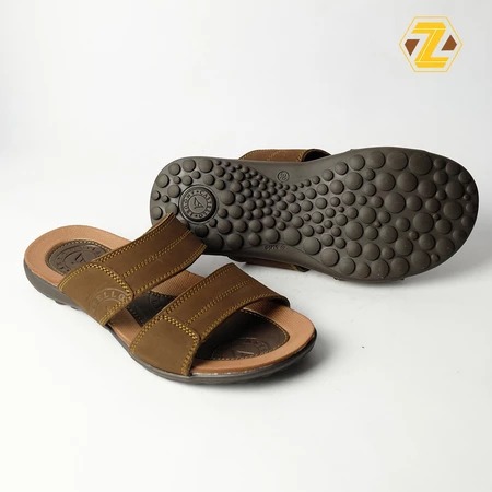 Sendal - sandal cowok - sendal kulit asli - sendal casual - ZEGER Sandal Kulit Pria Casual Selop Ban Dua - Bellamo 886