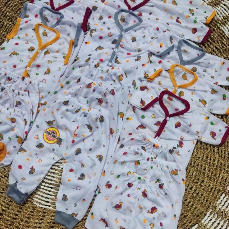paket hemat ekonomis baju bayi 0-3 bulan seri putih motif