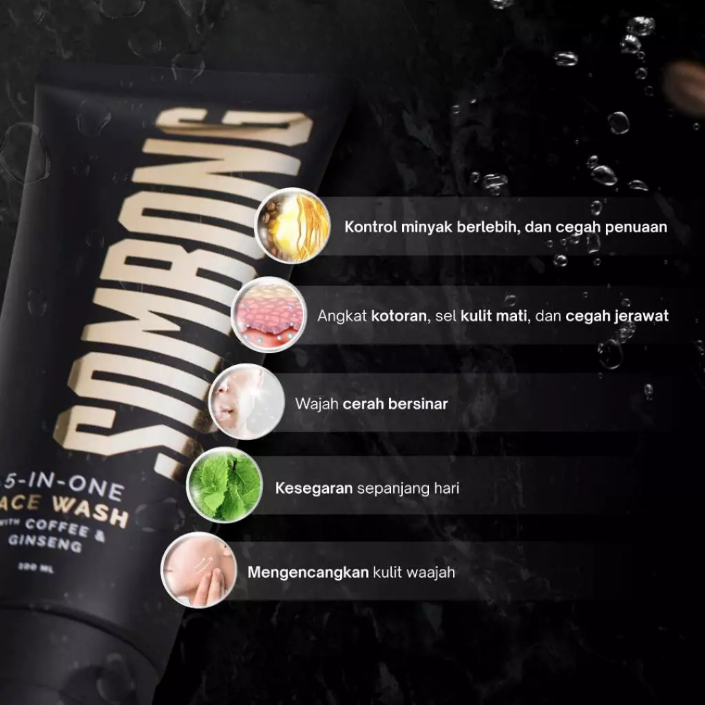 SOMBONG 5in1 Face Wash Pria Coffee Ginseng Sabun Cuci Muka Mencerahkan Wajah 100ml - XX410