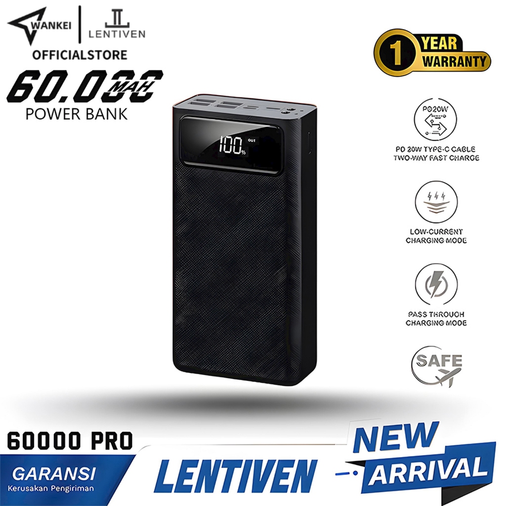 WANKEI LENTIVEN 60000mAh PowerBank 4 USB Fast Charging LED Digital Display Portable