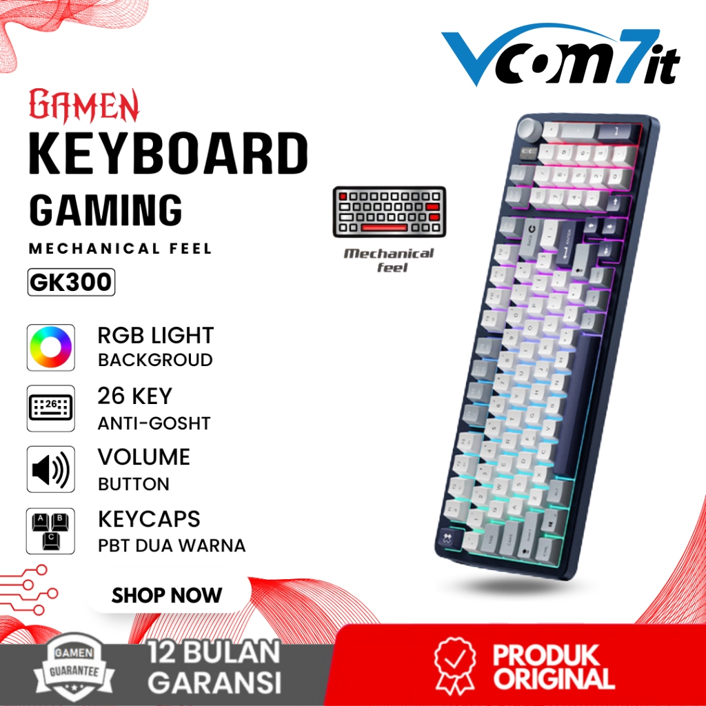 GAMEN GK300 Keyboard Gaming Membrane RGB Multifunction Knob Anti-Ghosting