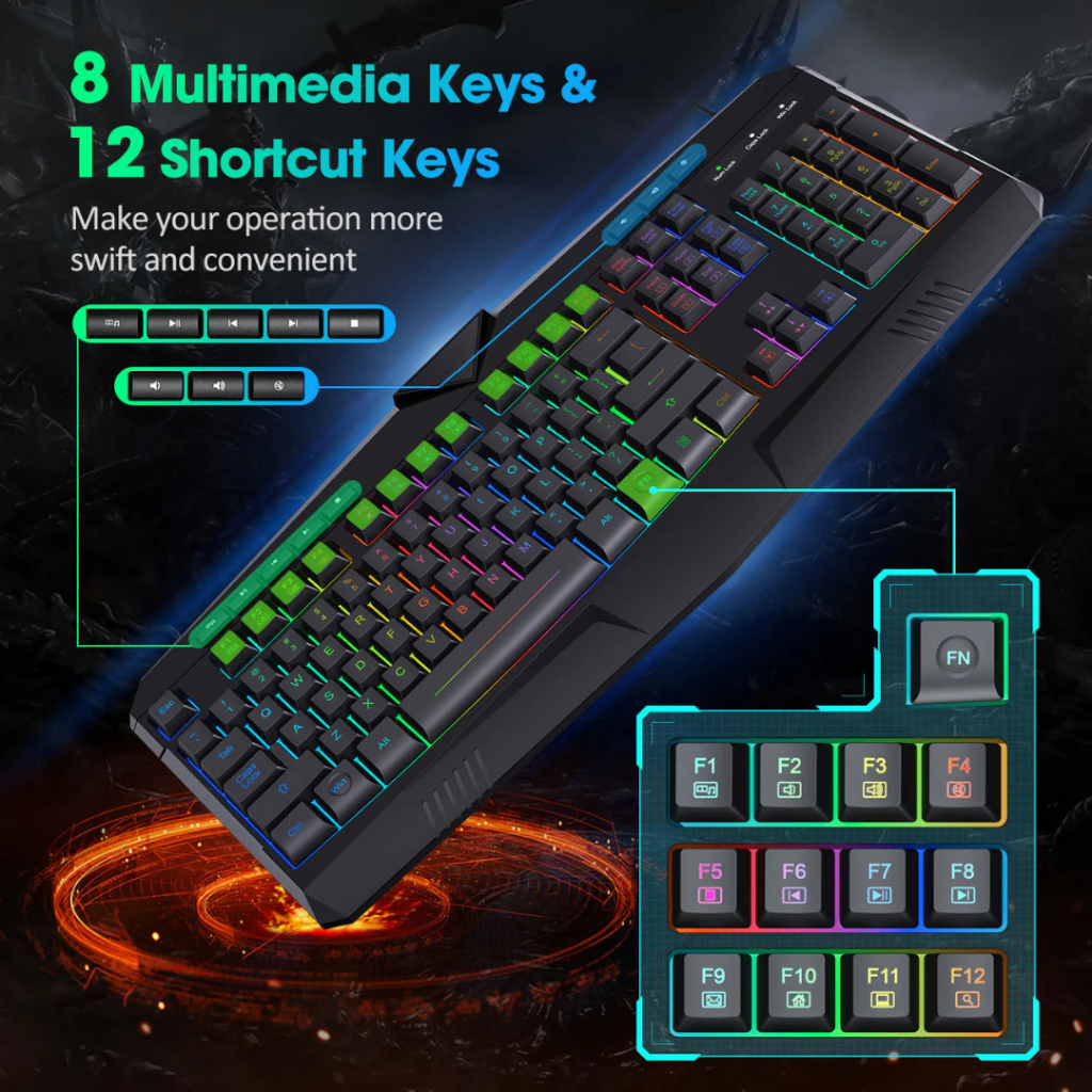 Victsing Keyboard Gaming Backlit Full Key Membrane Keyboard with Anti-Ghosting Keys RGB