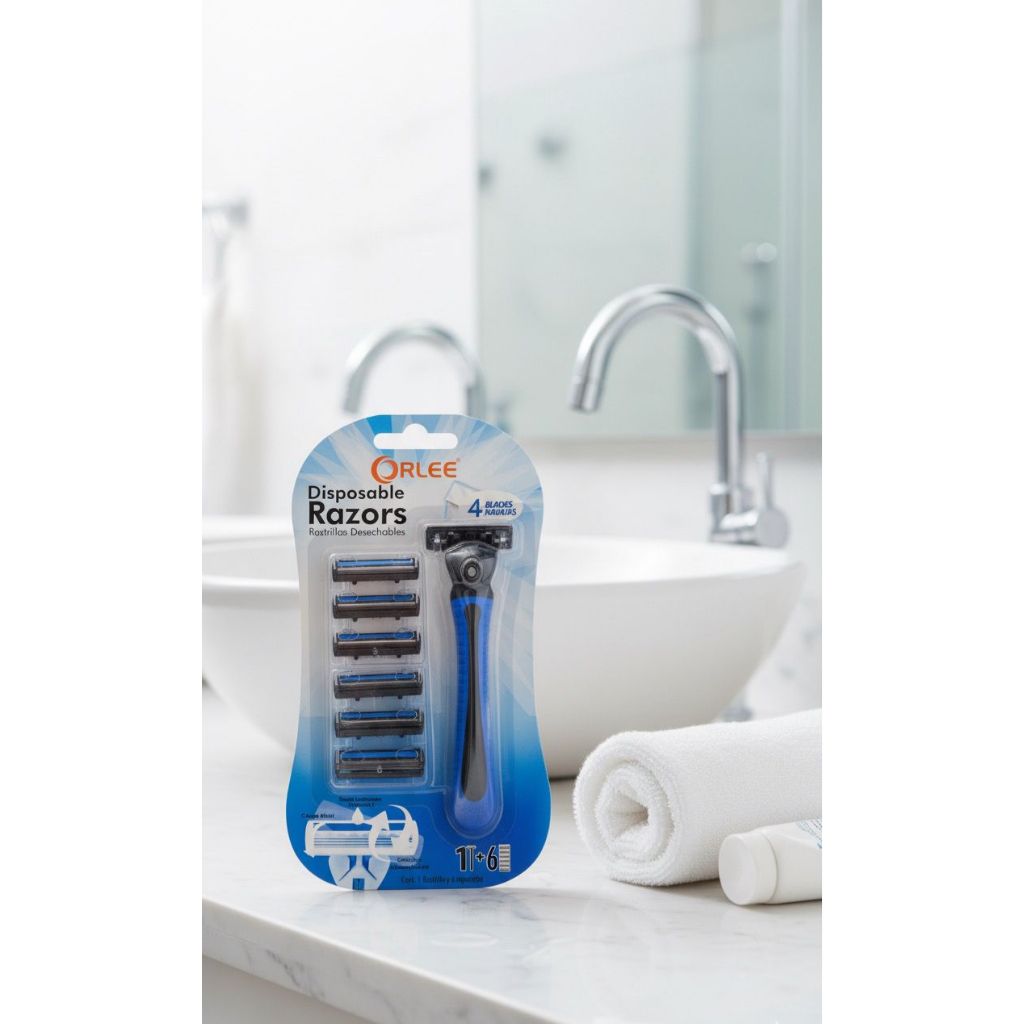 Manual Shaving Kit Razors Alat Cukur Cukuran Kumis Jenggot Bulu 4 Layer Mata Orlee 1+ 6 Refill Strip Pe