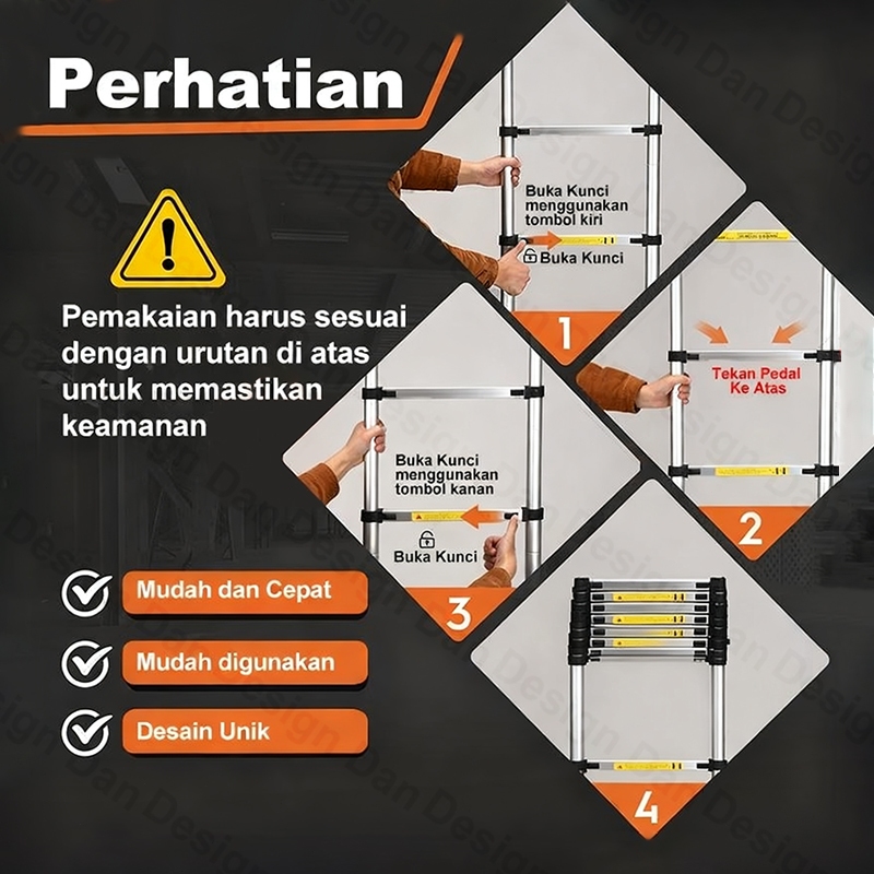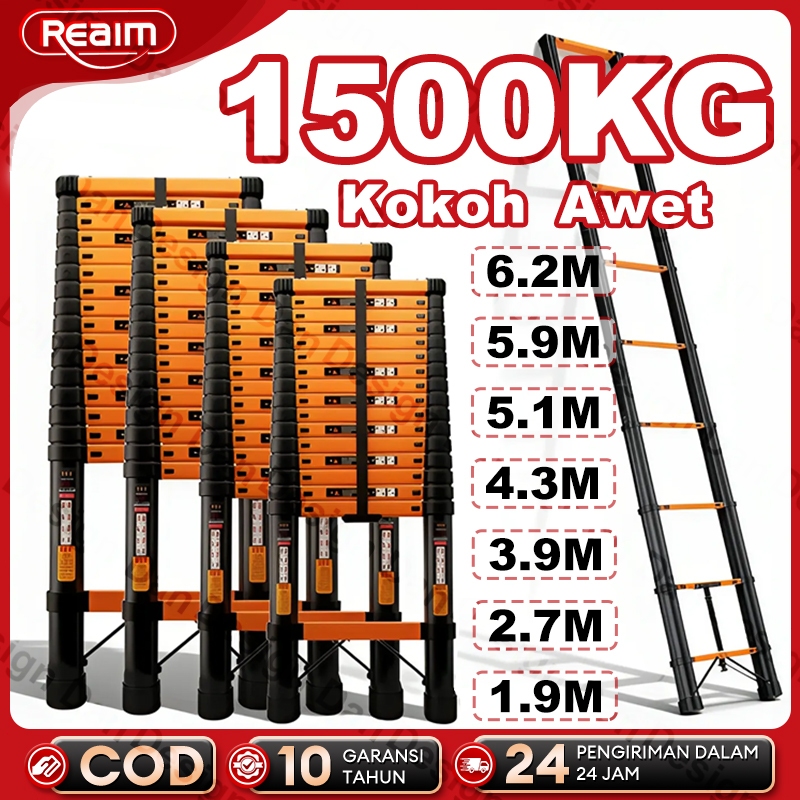 REAIM Tangga Lipat Alumunium Telescopic Ladder 6.2Meter Tangga Telescopic Single Ladder Oranye