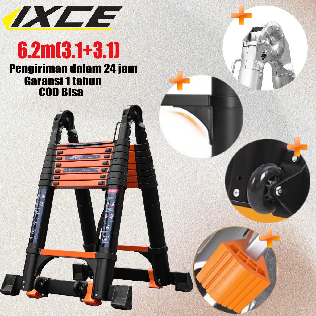 IXCE Tangga Teleskopik tanpa lekukan(3.1+3.1)6.2M Aluminium Double Telescopic Ladder tangga portabel