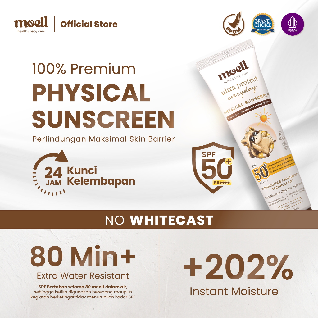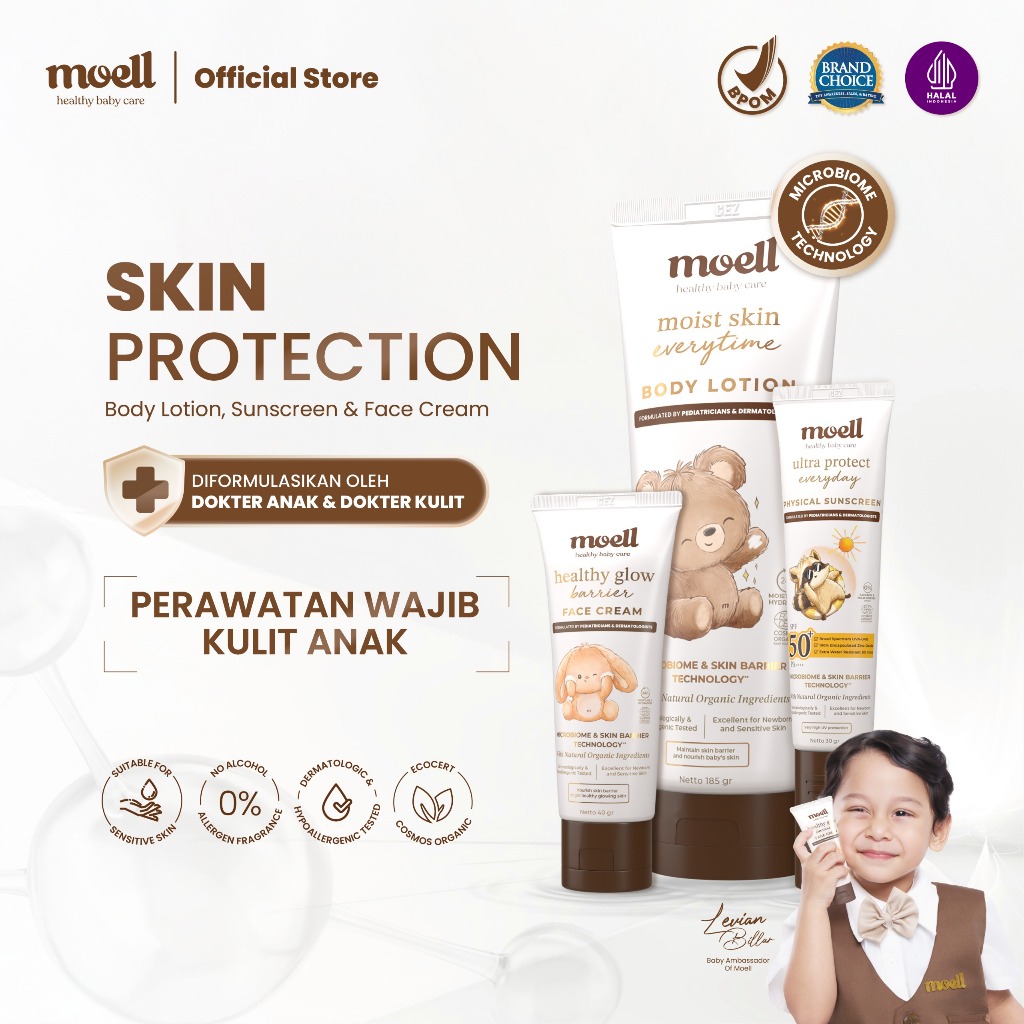 Moell Skin Protection - Face Cream 40gr & Physical Sunscreen 30gr & Body Lotion 185gr - Skincare Baby - Natural Organic