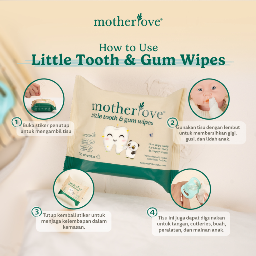 Motherlove Little Tooth & Gum Wipes 30 Sheets - Tisu Basah Pembersih Mulut, Gusi, Gigi dan Lidah Khusus Bayi - Food Grad