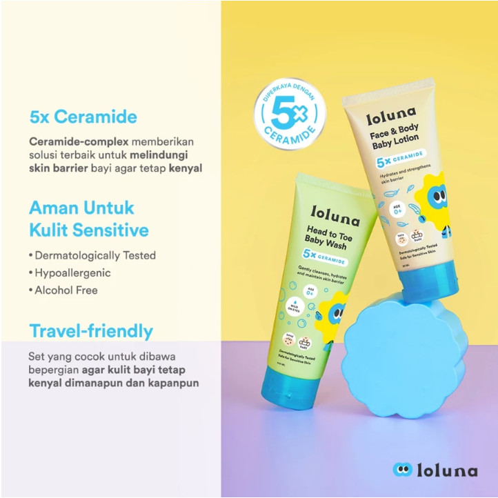 Loluna Wangi Maksimal Travel Set | Baby Bath Set untuk Perawatan Kulit dan Rambut Bayi dan Anak .