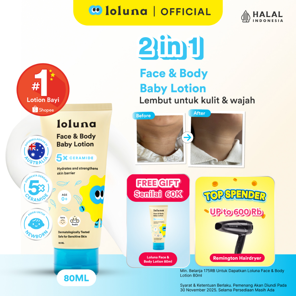 Loluna Face & Body Baby Lotion- Lotion Krim Muka dan Badan Bayi dan Anak / Krim untuk Newborn / 5x Ceramide