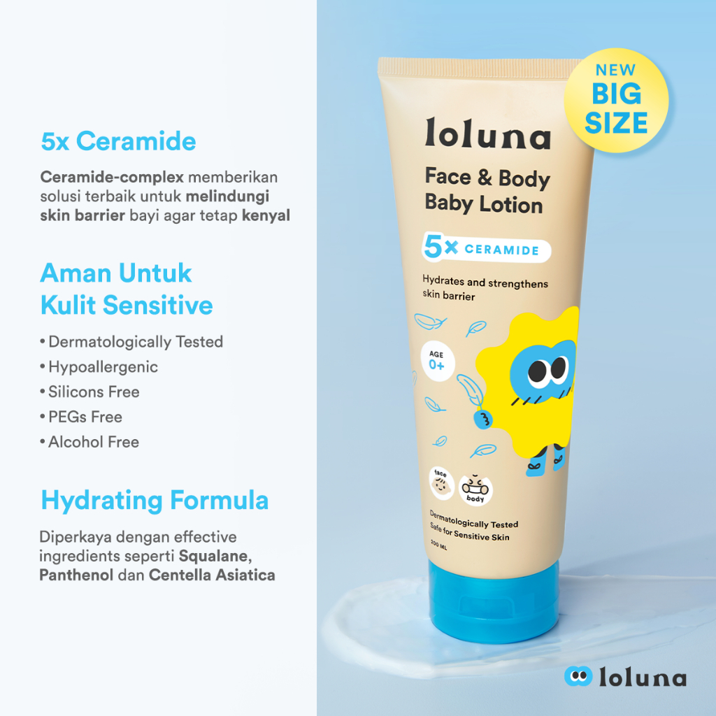 Loluna Face & Body Lotion 200ml- Losion/Krim Wajah & Badan Bayi Anak