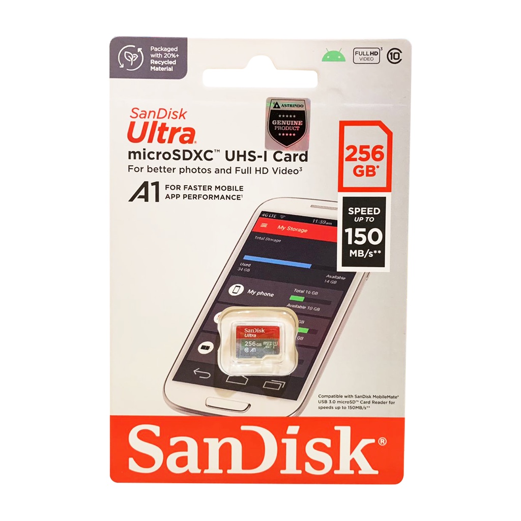 Memory Card | Micro SD 256GB SanDisk Ultra A1 up to 150Mbps Class 10 - Garansi Resmi 10 Tahun