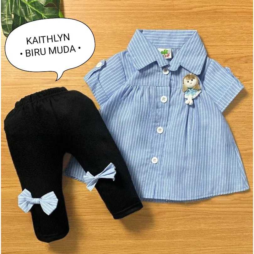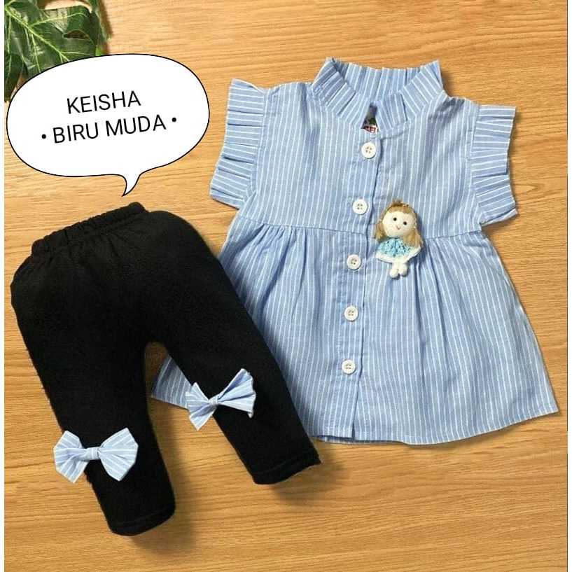 Setelan Baju Anak Perempuan / Baju Bayi Cewek Atasan Lengan Pendek Dan Celana Panjang Motif Keisha Denim Usia 0-6 Bulan