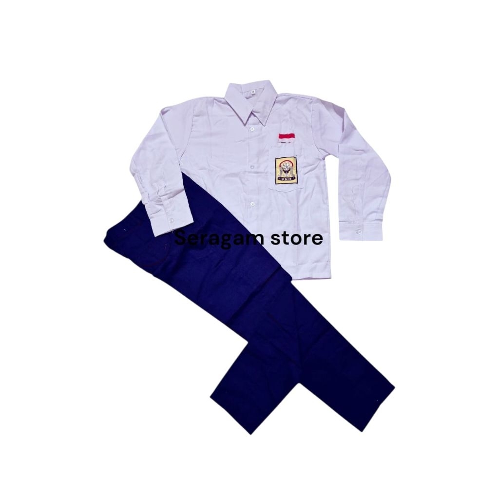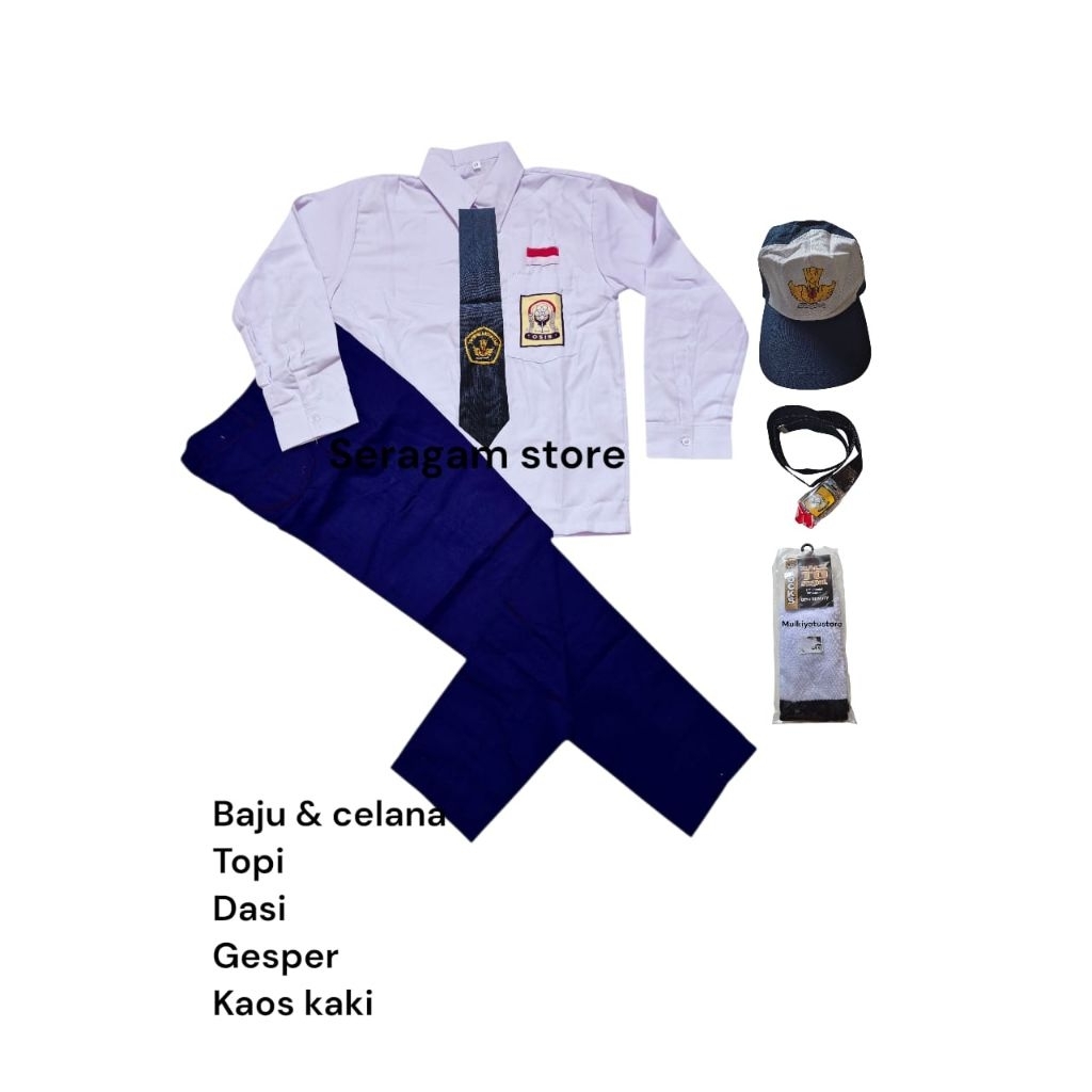 SERAGAM SEKOLAH SMP LAKI LAKI SET SUPER LENGKAP BAJU PANJANG,CELANA BIRU,TOPI,DASI,GESPER,DAN KAOS KAKI