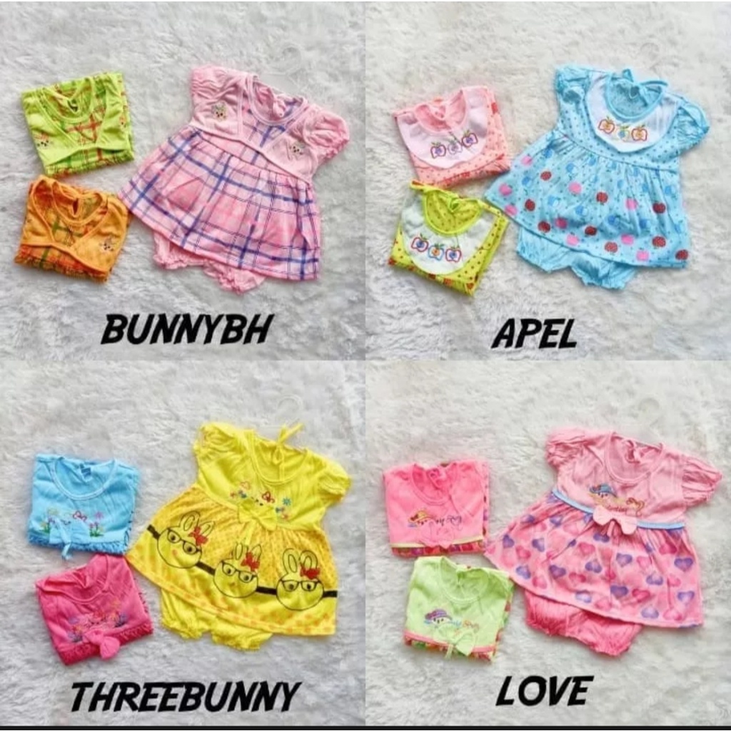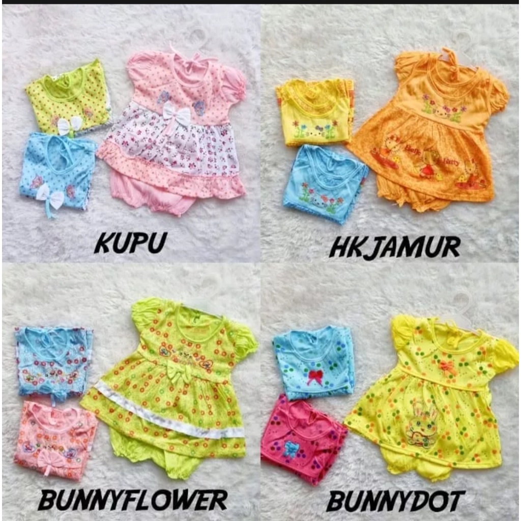 [6 PCS] Baju bayi perempuan 0 sampai 12 bulan karakter / Setelan bayi murah / peralatan bayi bayi lengkap termurah MOTIF