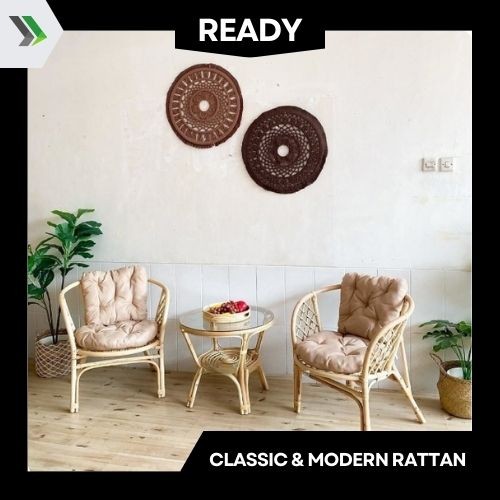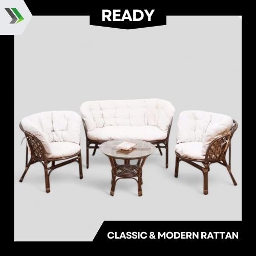 KURSI ROTAN 1 SET + BANTAL /MEJA PAKE ANYAM/ MEJA KACA / KURSI ROTAN MINIMALIS / KURSI TAMU ROTAN